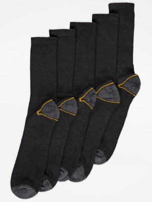 Workwear Cushion Sole Black Socks 5 Pack Men George At Asda